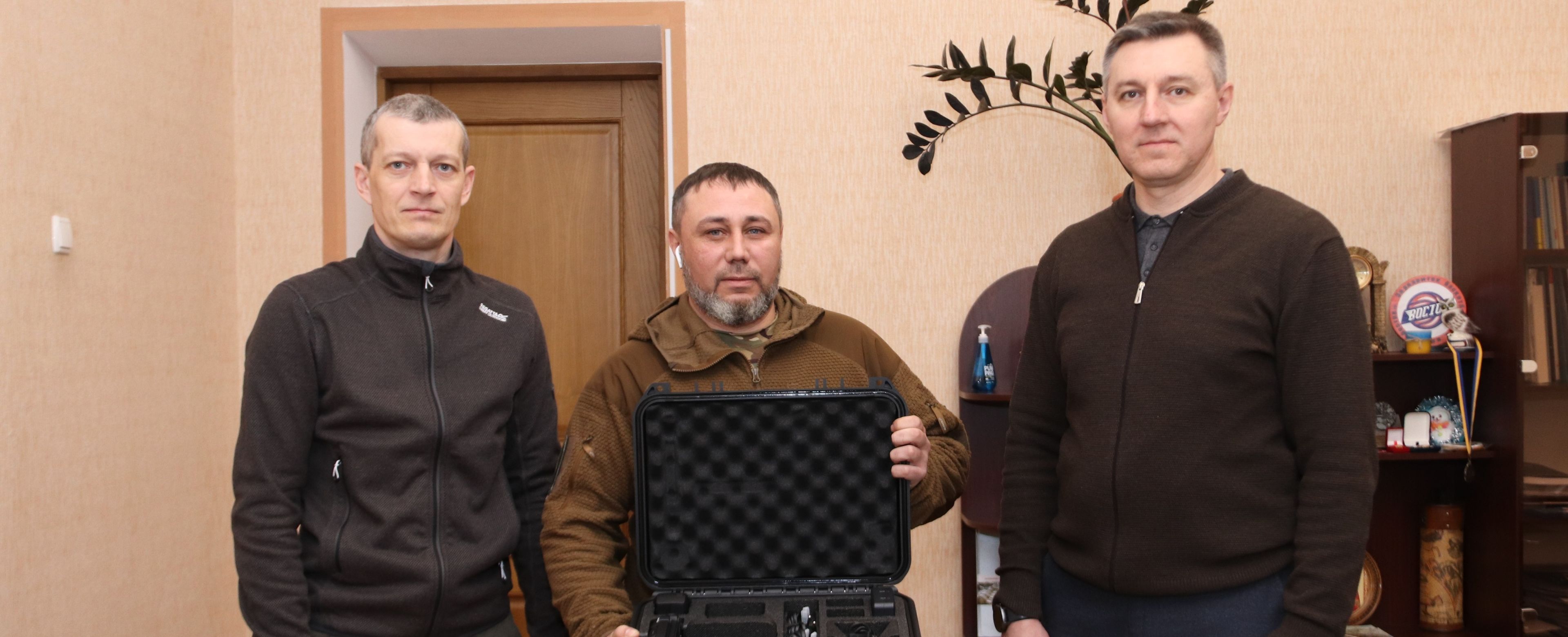 Вручили обладнання секретар Лозівської міської ради Юрій Кушнір та голова Лозівської районної ради Вадим Гоч. Придбали квадрокоптер за рахунок коштів міжбюджетного трансферту направленого з бюджету Лозівської тергромади на виконання заходів «Комплексної районної Програми територіальної оборони Лозівського району та інших військових підрозділів Збройних Сил України на 2021-2026 роки».