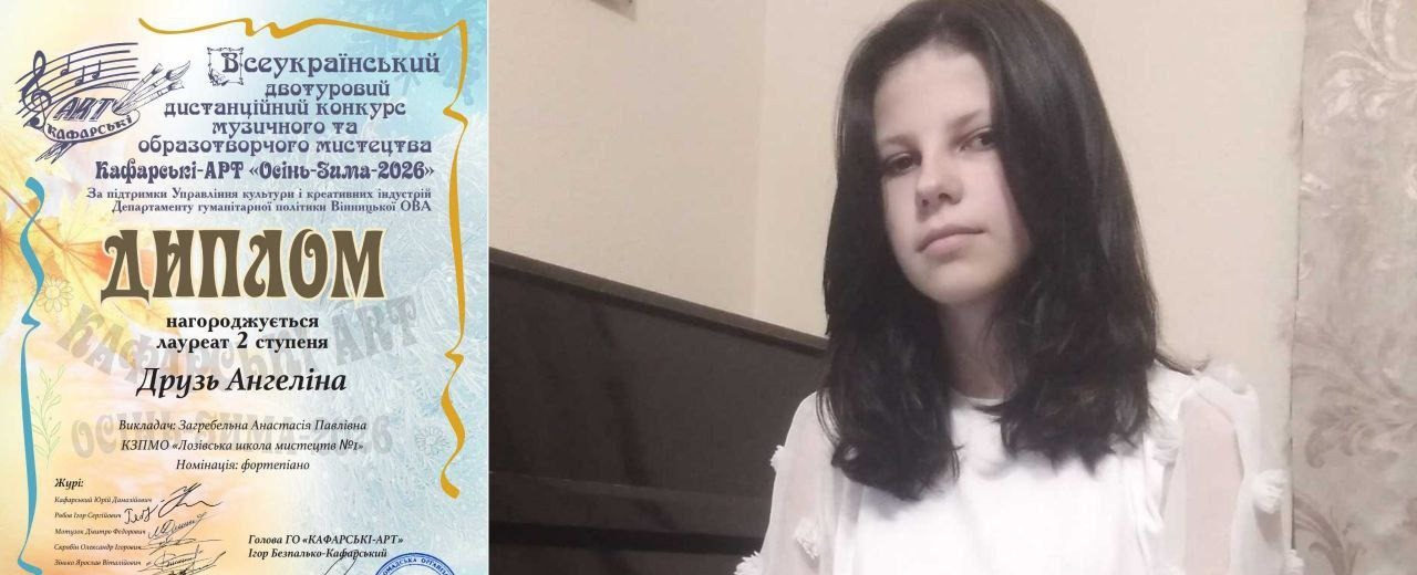 У номінації «Фортепіано» лауреатом ІІ ступеня стала Друзь Ангеліна. Підготувала ученицю викладач Загребельна Анастасія Павлівна.