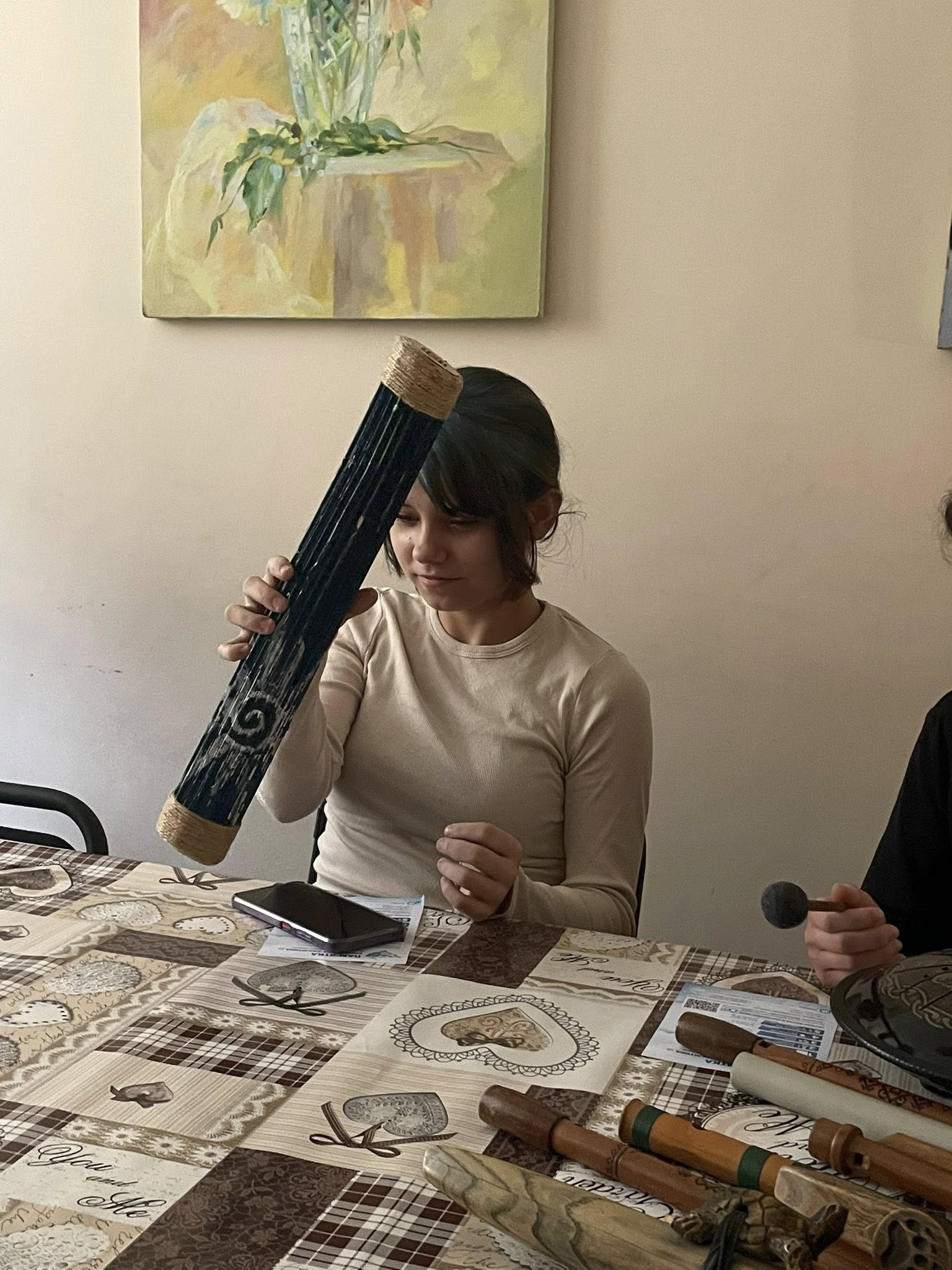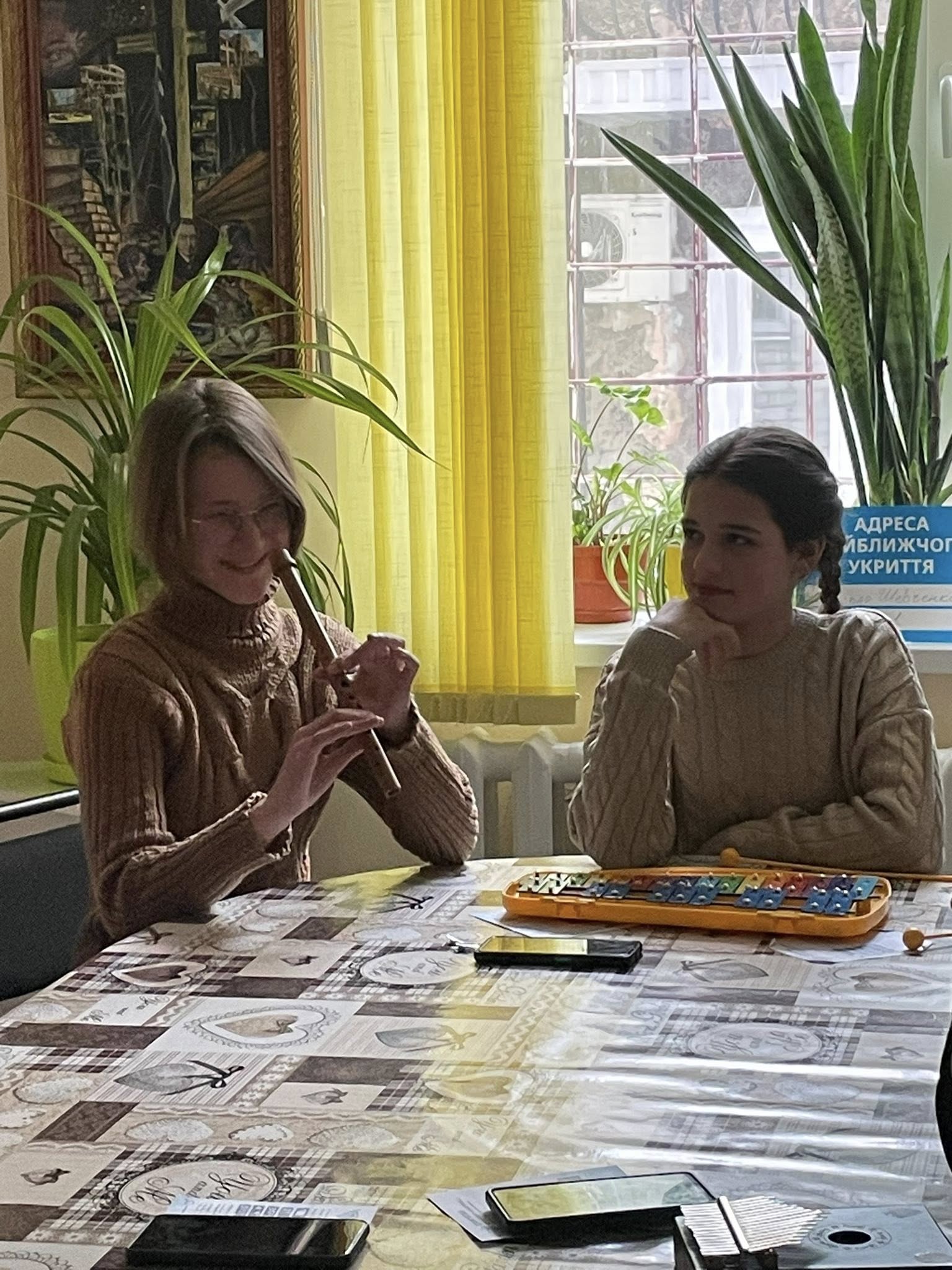 Під час зустрічі діти мали можливість у безпечній атмосфері виразити свої переживання й накопичені почуття. Серед різноманітних вправ особливою стала музична складова: учасники пробували грати на духових інструментах, імпровізували, досліджували звук і через нього передавали власний настрій. Це не була музична терапія в класичному розумінні — радше живий досвід самовираження, який подарував багато радості, сміху та щирого захоплення.