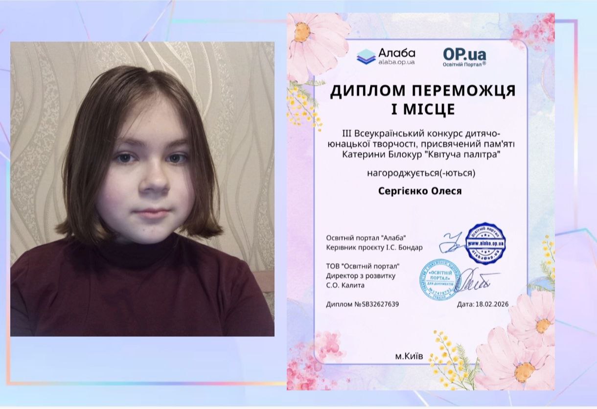 Дорогі наші художники! Ви дивитесь на світ інакше, ніж інші, і саме в цьому ваша сила. Ваша перемога — це доказ того, що щирість і творча сміливість завжди знаходять відгук у серцях людей. Пам’ятайте: кожен ваш малюнок робить цей світ трішки красивішим і добрішим.