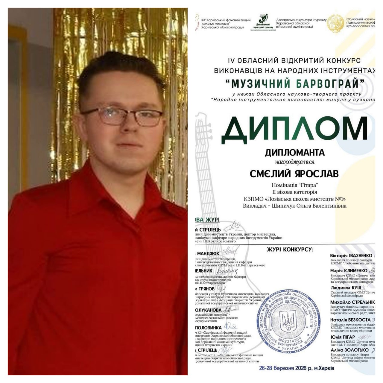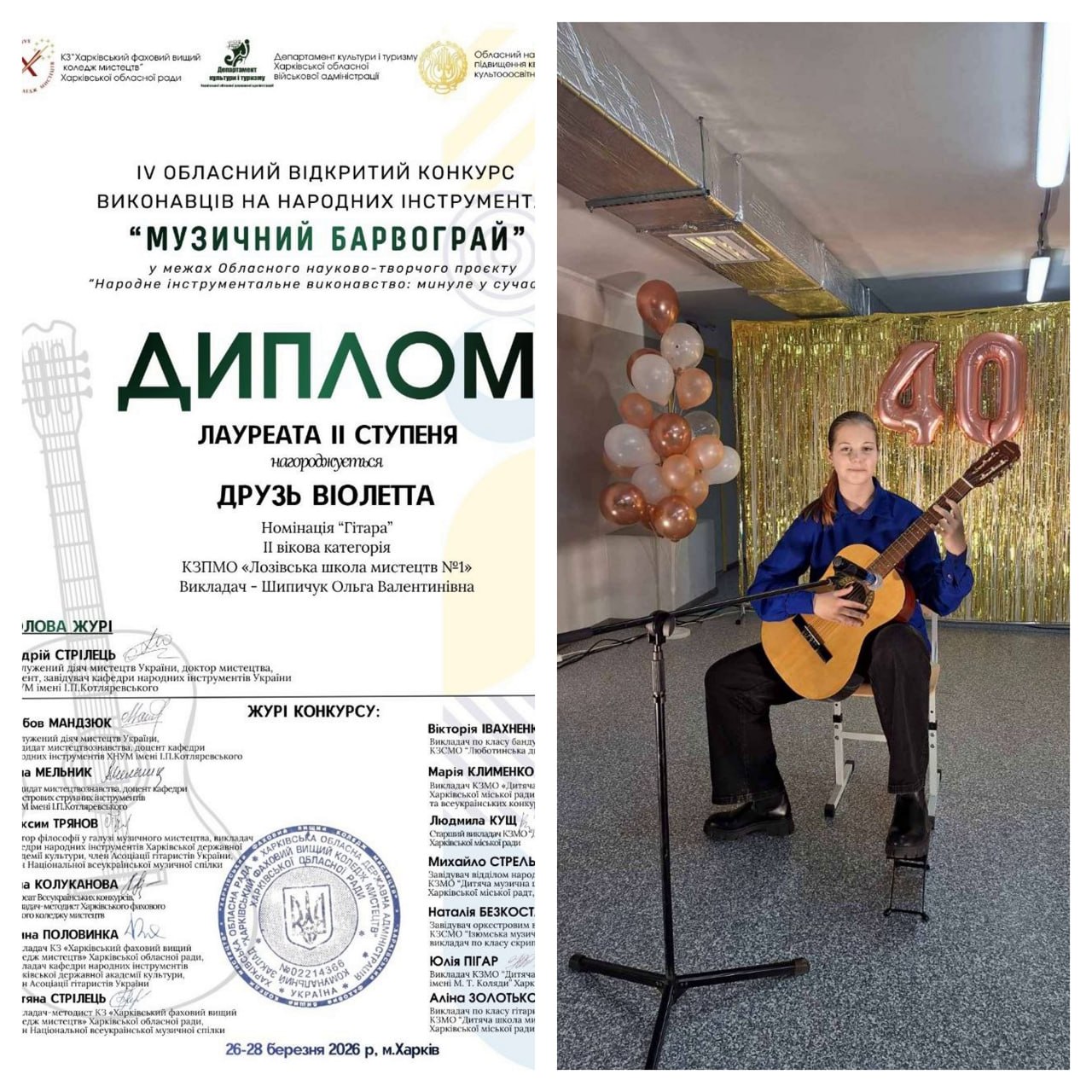 Вітаємо талановитих гітаристів КЗПМО «Лозівська школа мистецтв №1» із чудовими результатами на ІV Обласному відкритому конкурсі виконавців на народних інструментах «МУЗИЧНИЙ БАРВОГРАЙ».
