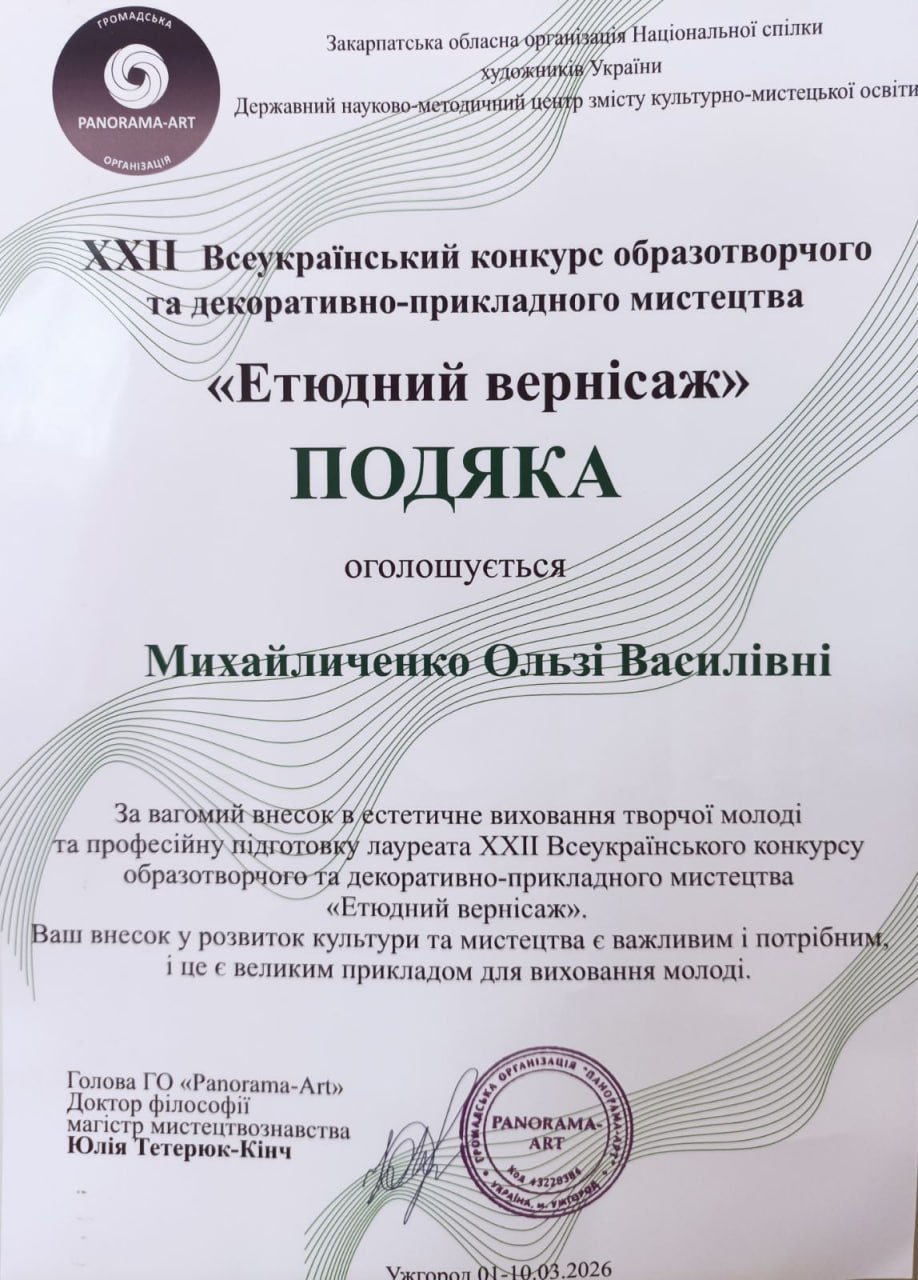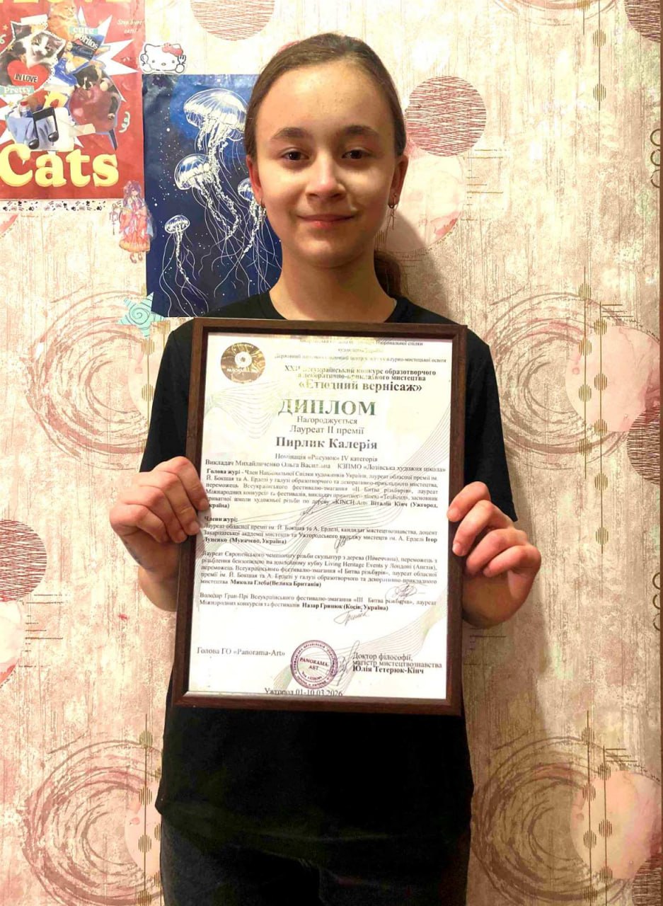 Щиро вітаємо Калерію Пирлик та її викладача Ольгу Михайличенко з високими результатами! Бажаємо натхнення, нових творчих звершень і яскравих перемог!