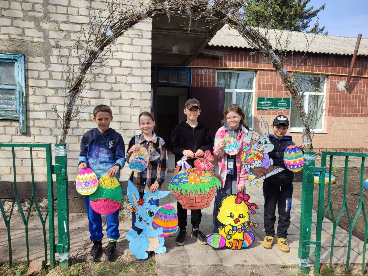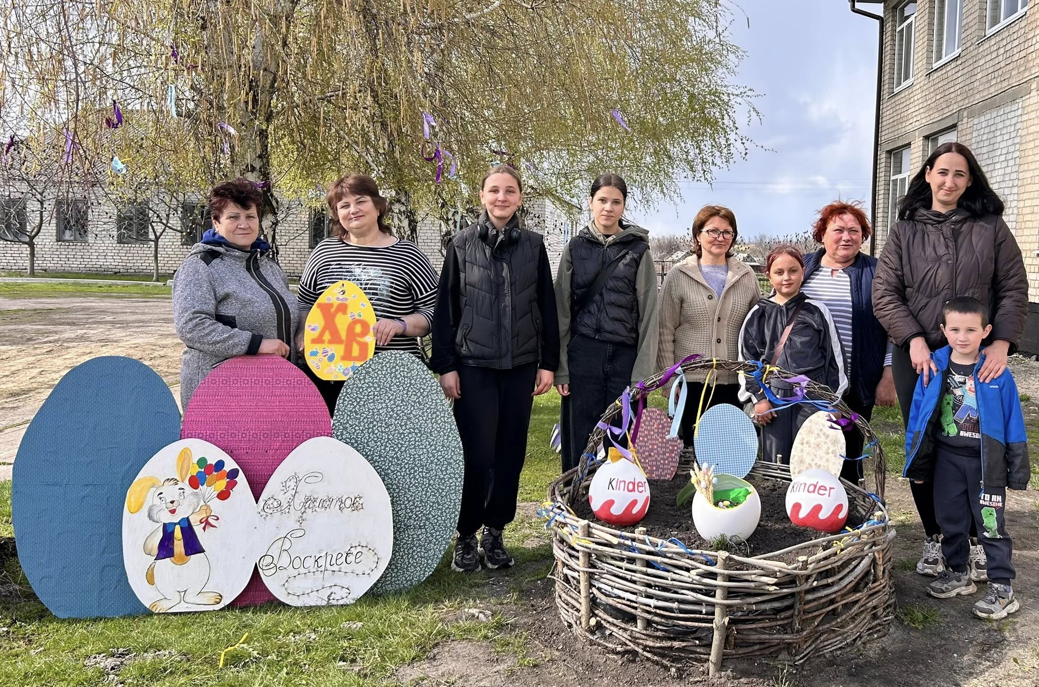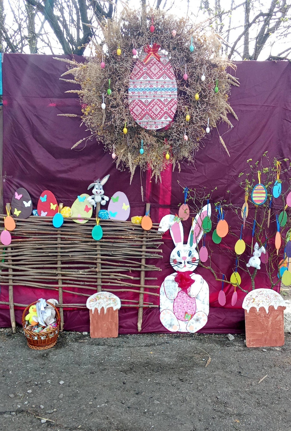 Біля сільських клубів та закладів культури з’являються атмосферні фотозони, оздоблені традиційними символами свята. Декорації прикрашають пасками, вербовою лозою, писанками, святковими кошиками та вишитими рушниками — усе, що створює теплий, родинний настрій.